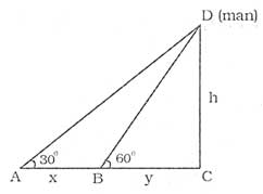 From figure, tan 60° = \(\cfrac{h}{y}\)