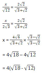 If \(\cfrac{x}{\surd12}=\cfrac{2\sqrt{2}}{\sqrt{3}+\sqrt{2}}\)   then the value of x is?