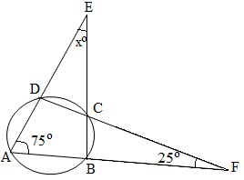 Find angle X, if points A, B, C, D are on the circumference of a circle