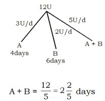 A completes a piece of work in 4 days and B completes it in 6 days. If both A and B work together, then the number of days required to complete the same work is –