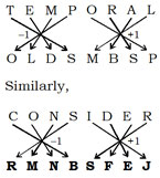 Please observe the explanation. here a single word divide in to two equal part and again half part from the end decrease by 1(-1) and half part from the right end increase by (+1) the respective letters these letters shown in figure with the help of arrows.
