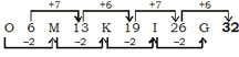 O, 6, M, 13, K, 19, I, 26, G, ?