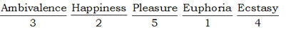 All the given words stand for 'Joy', but the intensity increases in the order - Ambivalence, Happiness, Pleasure, Euphoria, Ecstasy.