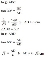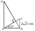 In the figure given below, \(\triangle\)ABC is right angled at B and \(\triangle\)ABD is right angled at A. If BD is perpendicular to AC and BC 2\(\sqrt{3}\) = cm with \(\angle \) CAB = 30º, then the length of AD is –