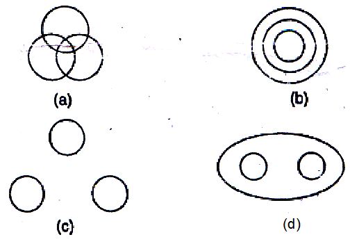 DIRECTIONS: Which of the following figures represents the best relationship among the three terms used in the question.