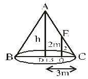 The diameter of a right conical tent is 6 m. If a pole of length 2 m can be fixed up in the tent at the half the distance of the radius from the centre of the base then the area of the canvas required is: