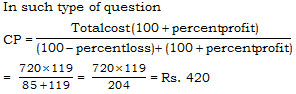 Nidhi bought two wrist watches for Rs.720. She sold one at a loss of 15% and the other at a gain of 19% and then her friend found that each wrist watch was sold at the same price. Find the cost of the wrist watch sold at a loss.