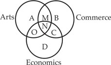 Study the diagram and identify the region which represents students who study Art or Economics but not both: