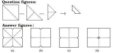 A piece of paper is folded and cutting as shown below. From the given responses indicate how it will appear when opened ?