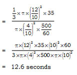 Water flows at the rate of 5 meter per minute from a cylinderical pipe 8 mm in diameter. How long will it take to fill up a conical vessal whose radius is 12 mm and depth 35 cm ?