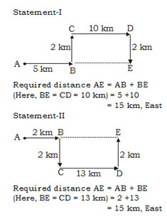 II.Ram goes 2 km towards east, then 2 km right, 13 km left and finally goes 2 km left and stops.