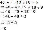 If '+' means '–', '–' means '×', '×' means '÷' and '÷' means '+', which combination will give you the value zero in 46*4 *12*18*9 ?