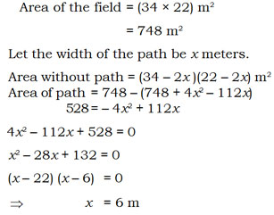 A path of uniform width runs round inside a rectangular field having length 34 m and width 22 m. The path occupies 528 m2. Find the width of the path.