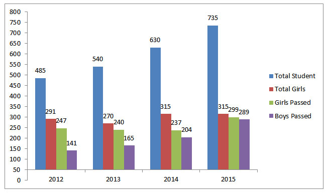 In which year boys pass percentage is maximum with respect to the total number of boys appeared with in their corresponding year?