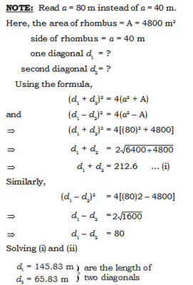 The area of a rhombus is 4800 m2, and the side is 40 m. Find the diagonals.
