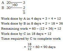 A can complete a work in 20 days and B in 30 days. A worked alone for 4 days and then B completed the remaining work along with C in 18 days. In how many days can C working alone complete the work?