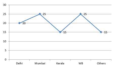 Ans (c) Number of non-fresher candidates from Delhi= 650 × 38/100 × 80/100 = 198.
