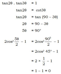 If \(\theta\) is a positive acute angle and tan2\(\theta\) .tan3\(\theta\) = 1, then the value of  \(\left (2 cos^2 \cfrac {50}{2} - 1 \right )\) is –