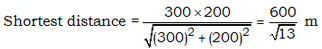 From a certain point on a straight road, a person observes a tower in the west direction at a distance of 200 m. He walks some distance along the road and finds that the same tower is 300 m south of him. What is the shortest distance of the tower from the road?