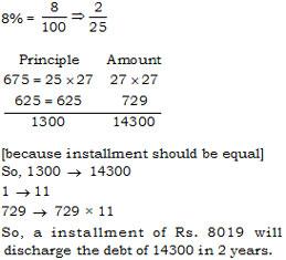What annual payment will discharge a debt of Rs.14300 due in 2 years at the rate of 8% compound interest?