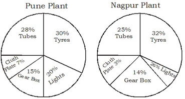 DIRECTIONS: The pie charts given here show some automobile parts manufactured by an automobile company at its Pune and Nagpur plants in the years 2016. The total production at both plants is equal. Study the pie-charts and answer the questions based on it.