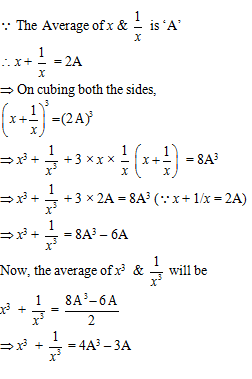If the average of two numbers \(x\) and \(\cfrac{1}{x}\) (where \(x\)\(\neq\)0) is A, then what will be the average of \(x^3\) and \(\cfrac{1}{x^3}\)?