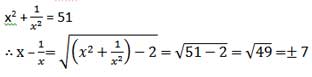 If x2 + \(\cfrac{1}{x^2}\) = 51, then the value of x – \(\cfrac{1}{x}\) will be:
