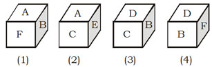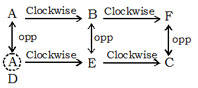 i.e B is opposite E and F is opposite C and the remaining A and Dwill be opposite to each other.