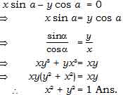 If x sin3  α    + y cos3  α    = sin  α    cos  α    α 0    and xsin  α    – y cos  α    = 0, then the value of   x2 + y2 is –