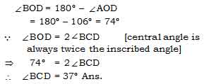 In the following figure O is the Centre and AOD = 106o, so BCD is: