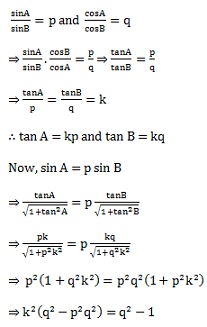 If \(\cfrac{sin A}{sin B}\) =p and \(\cfrac{cos A}{cos B}\) = q, then tan A = ?