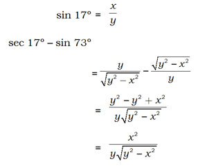 If sin 17º = \(\cfrac{x}{y}\) , then fixed the value of (sec 17° – sin 73°).