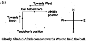 Tendulkar hits a ball towards North in a one day international cricket match between India and Pakistan. A Pakistani fielder, Shahid Afridi comes straight towards East to field the ball. Which direction does Shahid Afridi come from, to field the ball?
