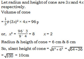 The radius and height of a right circular cone are in the ratio 3 : 4. If its volume is 96\(\pi\)cm3, what is its slant height?