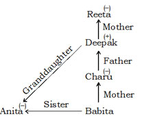 Anita is Babita's sister. Charu is Babita's mother. Deepak is Charu's father. Reeta is Deepak's mother. Then how is Anita related to Deepak ?