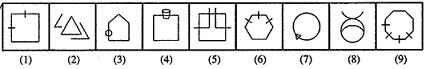 Ans: (b) In figures 8, 2 and 5, there is one complete design and two half designs of the same design. In figures 7, 4, 3 there is a closed figure which is intersected by another design. In figures 9, 1 and 6 a closed figure is being cut by dashes which are half of total number of sides of the figure.