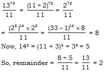When 1373 + 143 is divided by 11 then Remainder is:-