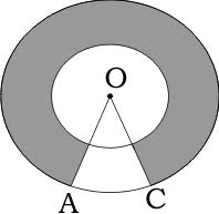 Find the area of the shaded region where radius of the two concentric circles with centre O are 7 cm and 14 cm respectively and AOC = 40º.