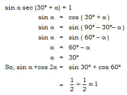 If sin\(\alpha\) sec(30o+\(\alpha\))=1 and 0o<\(\alpha\)<60o then the value of sin\(\alpha\) + cos2\(\alpha\) is: