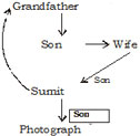 Pointing to person in a photograph, Sumit says, "He is the only son of my grand-father's only son's wife's only son." How is that person in the photograph related to Sumit?