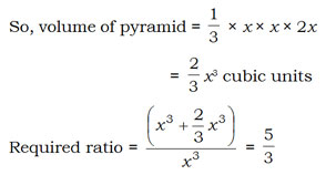 On the top of a cubical box a pyramid is placed, base of the pyramid being the same as the top of the box. Height of the pyramid is twice the height of the box. The ratio of the volume of the combined body to that of the box is ?