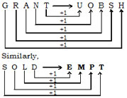 If in a certain code 'GRANT' is written as 'UOBSH', then how can 'SOLD' be written in the same code ?
