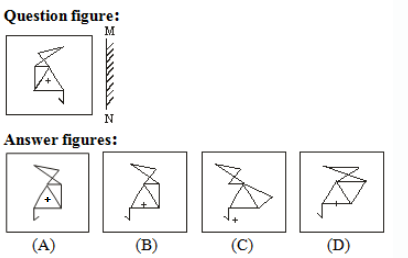From the answer figures, find out the figure which is the exact image of the question figure, when the mirror is placed on the line 'MN' –