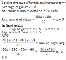 Now in final exam girls avg decrease 3 , so the avg of girls=x+5-3= x+2