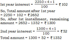 A builder borrowed Rs.2550 which he has to return in two equal installment at the rate of 4% per annum compound interest in 2 years. The amount of each installment will be–