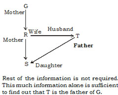 G is the mother of R. R is the mother of S. S is the daughter of T. T is brother of J. J is the  mother of L. L is the daughter of Q. Q is the son of D. Then what is the relation of T with G ?