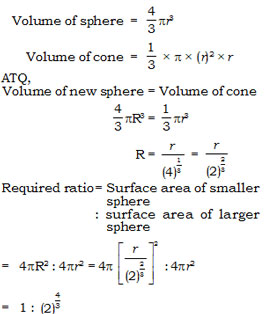 A large solid sphere is melted and moulded to form identical right circular cones with base radius and height same as the radius of the sphere. One of these cones is melted and moulded to form a smaller solid sphere. Then the ratio of the surface area of the smaller to the surface area of the larger sphere is -