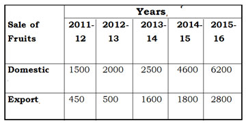Sale of fruits by a company over the years. ( In Crore Rupees)