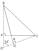 In an obtuse-angled triangle ABC, A is the obtuse angle and is the orthocenter. If BOC = 54°, then BAC is: