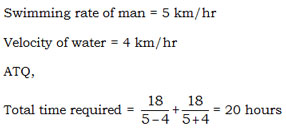 A man can swim 5 km/hr in still water. If the velocity of the stream be 4 km/hr, the time taken by him to swim to a place 18 km upstream and back is–
